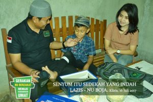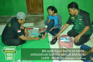 Boja pcnukendal.id – Pada Minggu (16/7), tim relawan lazis-NU Boja membagikan paket seperangkat alat sekolah yang berisi tas, alat tulis, sepatu dan uang saku ke para mustahi zakat. Paket tersebut diantar langsung ke rumah mustahik. Dalam kesempatan itu, tim yang dinamakan Tim Penebar Senyum disebar langsung ke 6 dusun di wilayah kecamatan Boja agar bisa berinteraksi langsung dengan warga di masing-masing dusun itu. Hal itu bertjuan sebagai bahan pertimbangan untuk menyusun program program berikutnya. Program itu dinamakan Back to School. Dalam penyusunannya, program itu disusun beberapa tahap; perencanaan, penjaringan usulan sasaran, pelaksanaan dan evaluasi. Hal itu karena Lazis-NU boja sadar bahwa sebagus apapun programnya, tanpa kerjasama dengan ranting dan lembaga NU lainya, program tidak mungkin tercapai secara maksimal.
