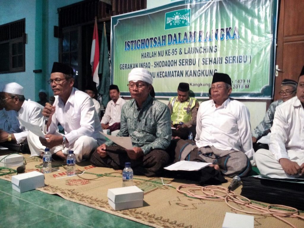 Acara itu diadakan dalam rangka Harlah NU ke 95 dan launching Gerakan Infaq - Shodaqoh Serbu (sehari seribu).Istighosah dipandu oleh rois syuriah MWC NU Kangkung, Kiai Moh. Rofwan. Sebelum memandu, beliau sedikit memberikan sambutan bahwa tujuan istighosah adalah berdo'a untuk diri kita, masyarakat, bangsa dan negara. Ia juga berharap, dengan istighosah, masyarakat bisa mendapat keamanan, keselamatan dan NKRI terjaga dari tangan-tangan yang tidak bertanggung jawab.